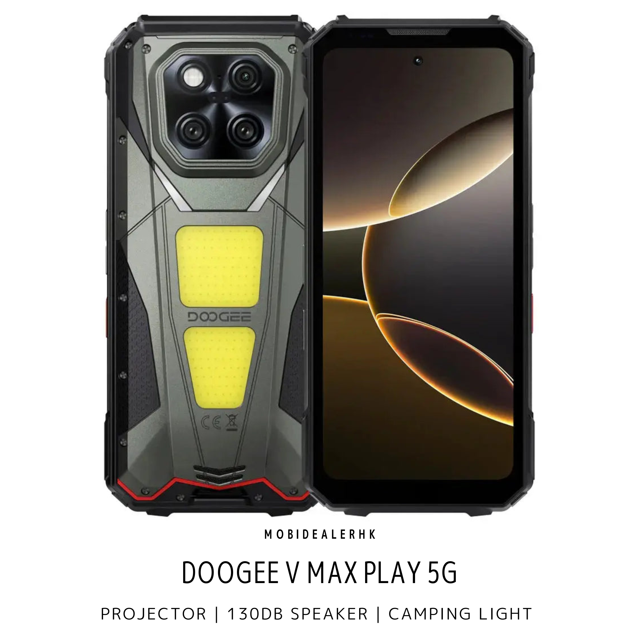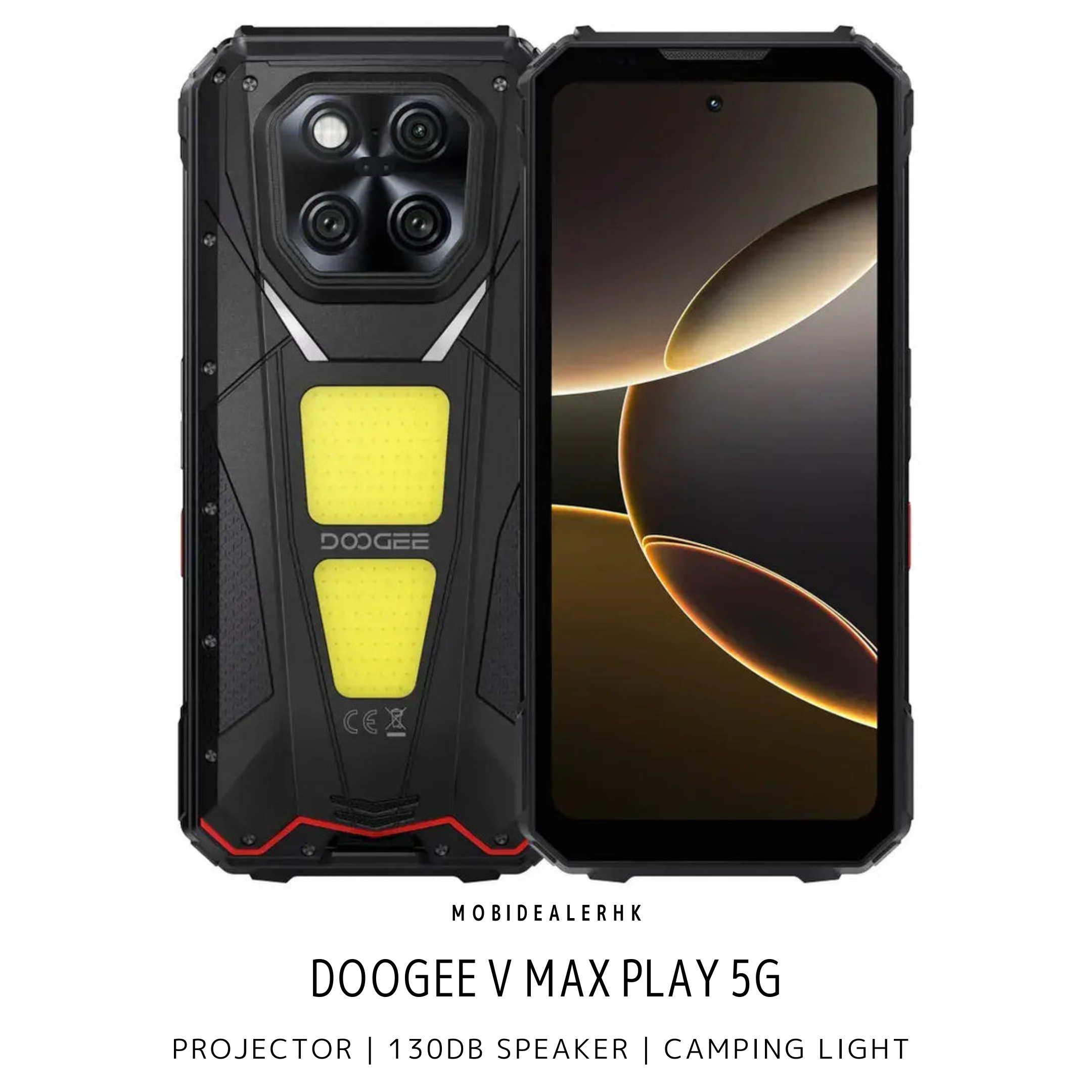 全新 New | Doogee V Max Play 5G 三防手機 | 道格 V Max Play 5G 三防手機 | 投影儀 | 130dB喇叭 | 露營燈 | 反向充電 | 20,500mAh 尺寸 Dimensions - 重量 Weight - 防水標準 Waterproof Standard IP68 | IP69K 防跌標準 Resistance Standard MIL-STD-810H 作業平台 Operating System Android 15 處理器 Processor MediaTek Dimensity 7300 顯示屏 Display 6.78" | 1080 × 2460 更新率 Refresh rate | 120Hz RAM 16Gb 虛擬擴充RAM | Virtual Expandable Capacity of RAM 20Gb 內存 Internal Storage 512Gb 外置記憶咭 External Memory 2Tb 前置相機 Front Camera 3,200萬像素 32MP 後置相機 Rear Camera 2億像素主鏡頭 200MP Main Camera 800萬像素廣角與微距鏡頭 8MP Wide Angle & Macro Camera 6,400萬像素夜視鏡頭 64MP Night Vision Camera 指紋識別 Fingerprint 支援 Support NFC 支援 Support 投影儀 Projector 支援 Support | 100-Lumen | 480P | 120Hz 喇叭 Speaker 130dB 電池 Battery 20,500mAh | 45W 反向充電 Reverse Charging 支援 Support | 10W 露營燈 Camping Light 支援 Support | 1200-Lumen 藍牙 Bluetooth 5.4 Wi-Fi 6E 顏色 Colour 黑 Armor Black 灰 Battle Rust 包裝清單 In The Box 電源轉換器 Adapter USB Type-C 數據線 USB Type-C Cable 屏幕保護貼 Protective Film 快速入門指南 Quick Start Guide