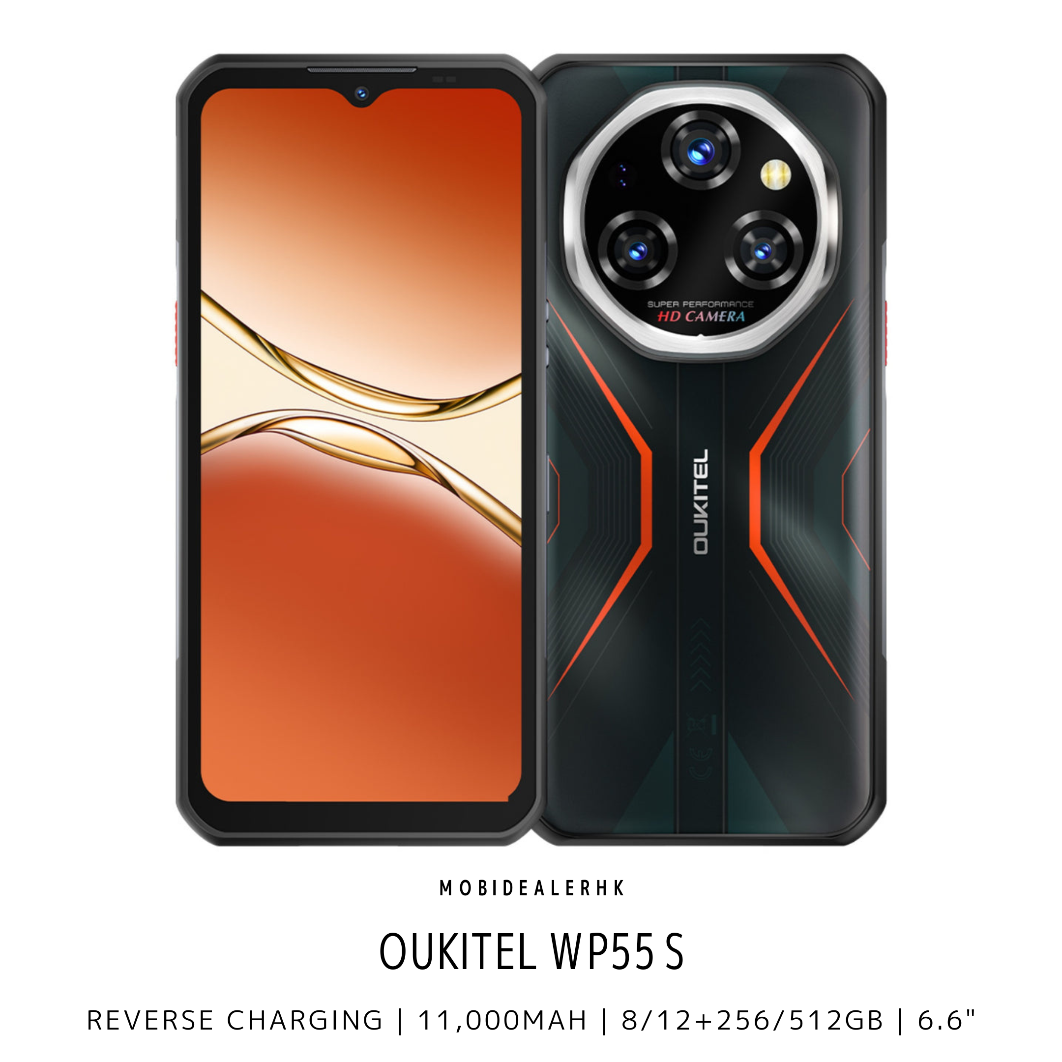 全新 New | Oukitel WP55 S 三防手機 | 11,000mAh | 8/12+256/512Gb | 6.6" | 反向充電 尺寸 Dimensions 172.2 x 81 x 15.3mm 重量 Weight 360g 防水標準 Waterproof Standard IP68 | IP69K 防跌標準 Resistance Standard MIL-STD-810H 作業平台 Operating System Android 15 處理器 Processor MediaTek Helio G100 顯示屏 Display 6.6" | 1080 × 2408 更新率 Refresh rate | 120Hz RAM 8Gb 12Gb 虛擬擴充RAM Virtual Expandable Capacity of RAM 16Gb 24Gb 內存 Internal Storage 256Gb 512Gb 外置記憶咭 External Memory 2Tb 前置相機 Front Camera 3,200萬像素 32MP 後置相機 Rear Camera 6,400萬像素主鏡頭 64MP Main Camera 200萬像素微距鏡頭 2MP Macro Camera 30萬像素輔助鏡頭 0.3MP Ancillary Camera 指紋識別 Fingerprint 支援 Support NFC 支援 Support 電池 Battery 11,000mAh | 33W 反向充電 Reverse Charging 支援 Support 顏色 Colour 黑 Black 橙 Orange 包裝清單 In The Box 電源轉換器 Adapter USB Type-C 數據線 USB Type-C Cable 快速入門指南和保養卡 Quick Start Guide and Warranty Card