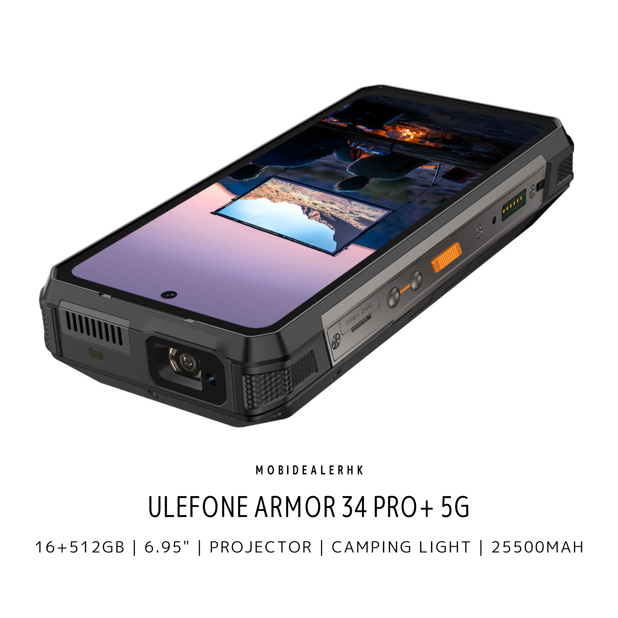 全新 New | Ulefone Armor 34 Pro+ 5G 三防手機 | 歐樂風 Armor 34 Pro+ 5G 三防手機 | 16+512Gb | 6.95" | 投影儀 | 多功能燈 | 夜視鏡 | NFC | 3咭槽 | 25500mAh | 反向充電