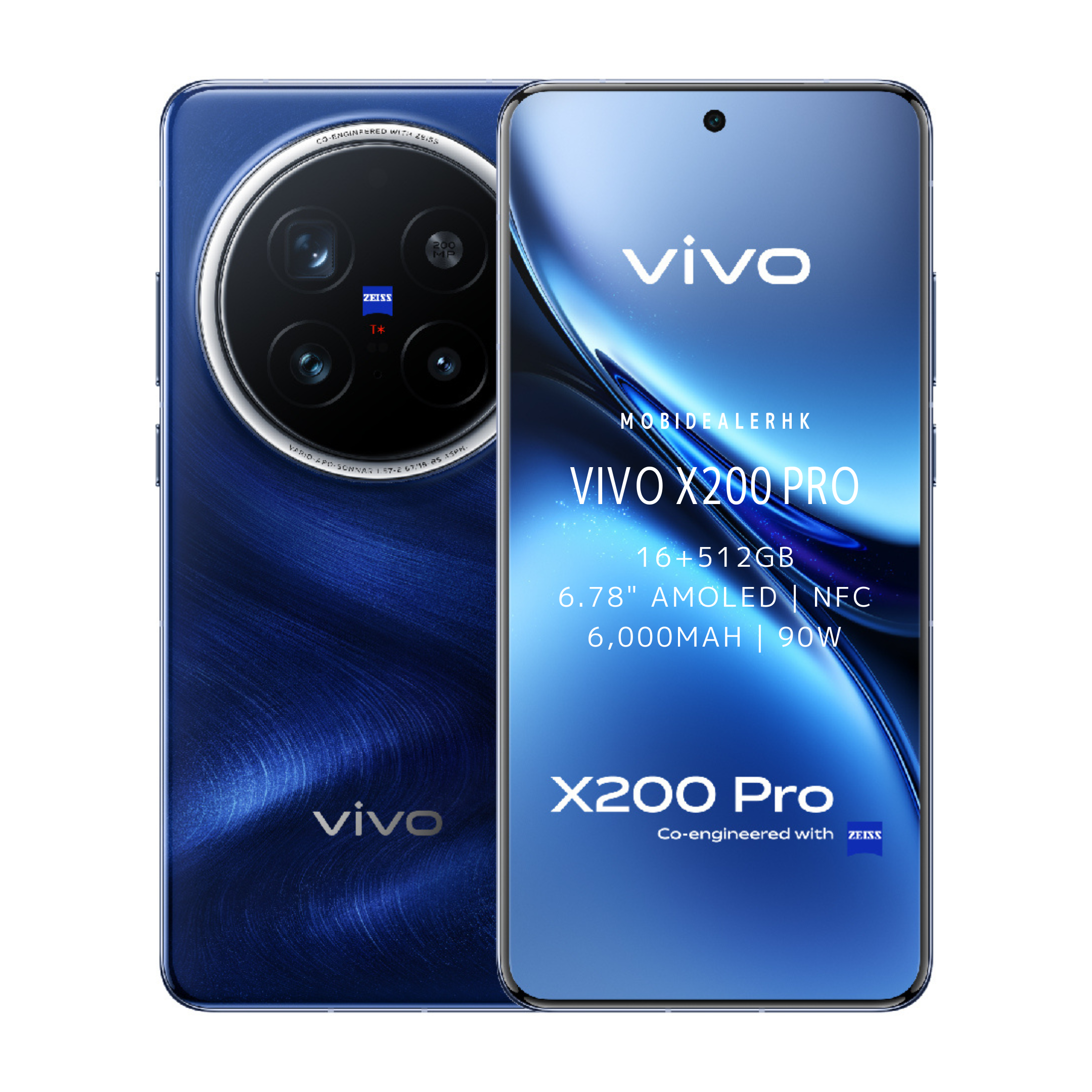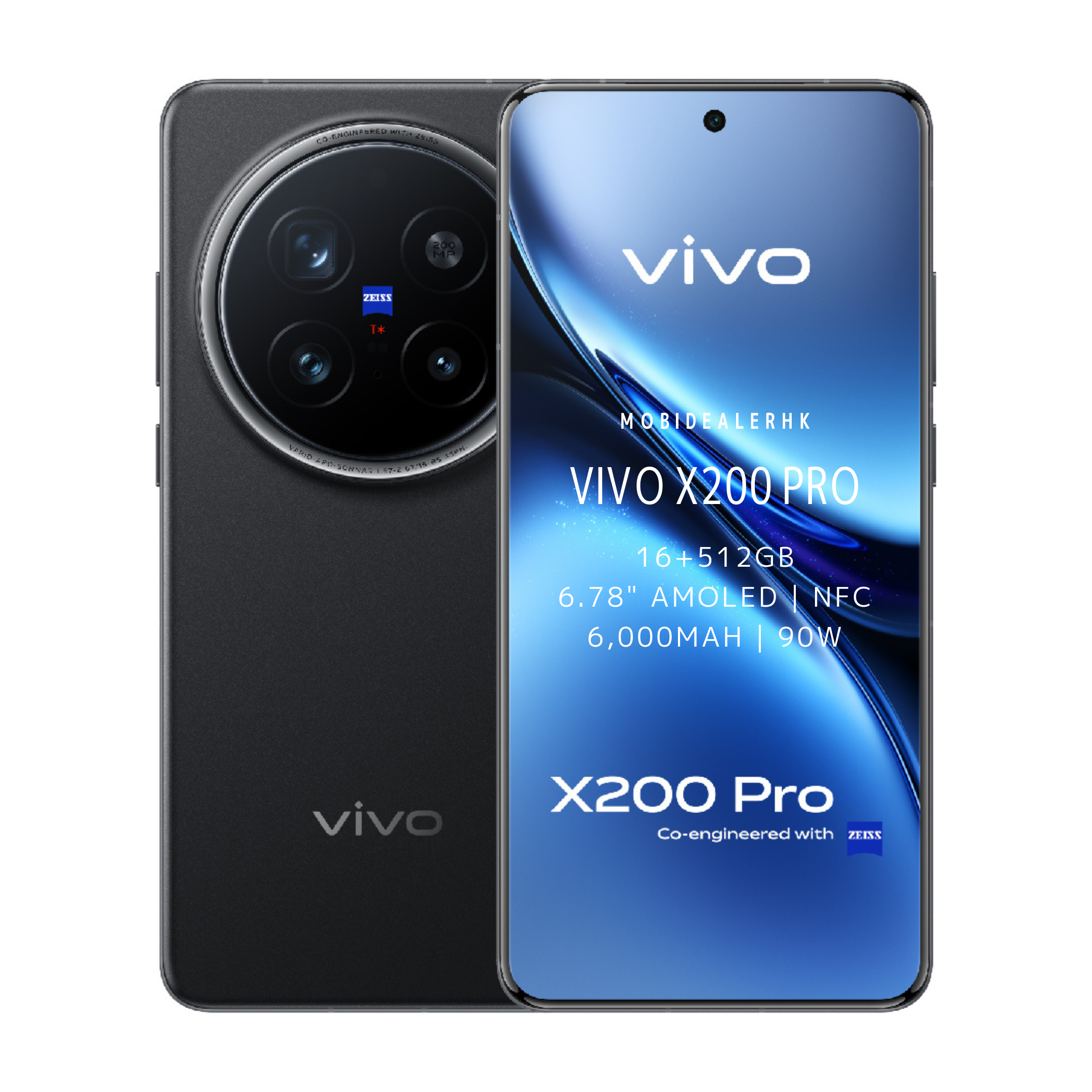 全新(New) • Vivo X200 Pro 5G《6.78” AMOLED, 16+512Gb, 32+200/50/50MP, NFC》 防水標準/Waterproof standard:IP68, IP69 處理器/Processor:MediaTek Dimensity 9400 系統/System:Android 15 屏幕/Display:6.78" FHD+ (2800 x 1260), 120Hz, AMOLED RAM:16Gb 記憶體/Memory:512Gb 前置相機/Front camera:32MP 後置相機/Rear camera:200MP + 50MP + 50MP 指紋識別/Fingerprint:支援Support NFC:支援Support 電池/Battery:6,000mAh, 90W 無線充電/Wireless charging:支援Support, 30W 顏色/Colour:鈦Titanium/黑Black/藍Blue 配件/Accessories:充電器Charger, USB cable, SIM pin,Quick Start Guide 額外配件/Extra Accessories :屏幕保護貼Protector Film, 保護套TPU Case